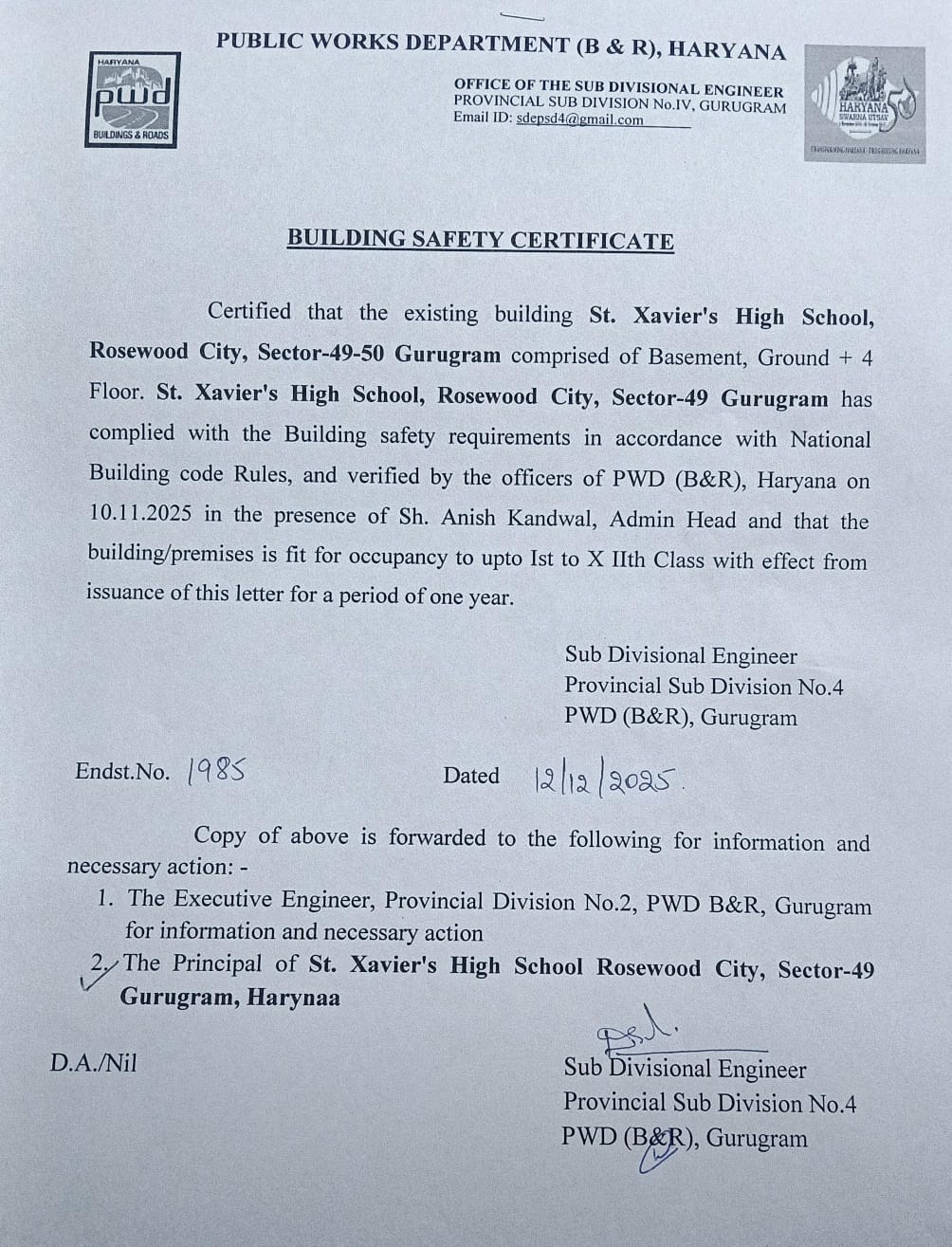 CLICK HERE TO VIEW BUILDING SAFETY CERTIFICATE